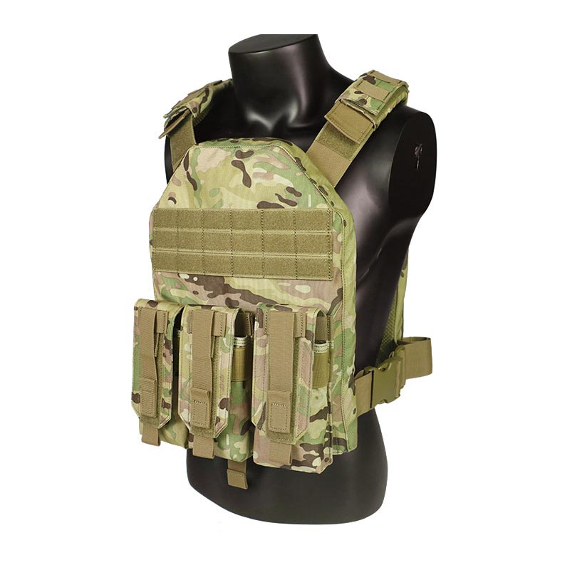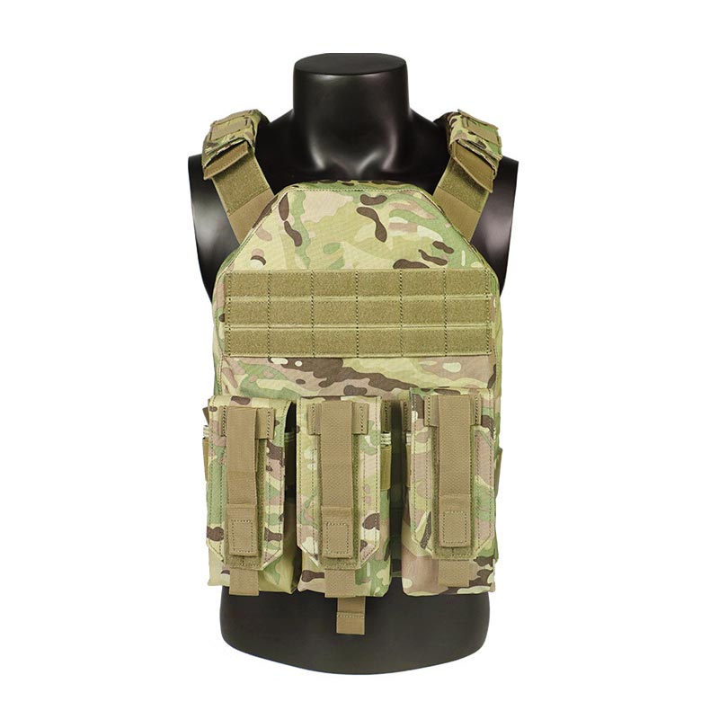 Bảng ba kẹp phía trước có thể chứa ba kẹp 9mm và kẹp 7,62mm. Áo vest phù hợp với bảng cắm 25 * 30cm.
